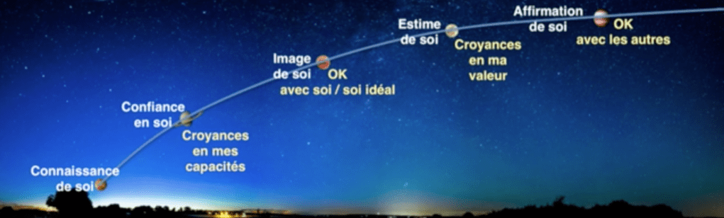 Dans cette vidéo, j’évoque plusieurs « planètes » , la confiance en soi, l’image de soi, l’estime de soi, l’affirmation de soi. Ce sont des notions qu’on utilise souvent, comme par exemple « je manque de confiance en moi. » Et si je vous demandais d’en donner une définition simple … Difficile, non ? Parce que c’est peut être un sentiment diffus qui se mélange avec d’autres, la peur de, je n’ose pas, et que vont en penser les autres, j’ai tout raté donc à quoi bon… etc. Alors essayons de mettre de l’ordre dans tout ça. Pourquoi ? Pour y voir clair et quand on y voit clair, comme par hasard des solutions apparaissent parce qu’on peut en déterminer les causes profondes. Je vous parlais de méthode en introduction, c’est ce que peut vous apporter le coaching professionnel, vous aider à faire votre propre diagnostic pour que vous trouviez VOS solutions adaptées à VOUS, à VOTRE contexte et VOTRE personnalité. Avec juste, un aligneur de planètes, un coach.