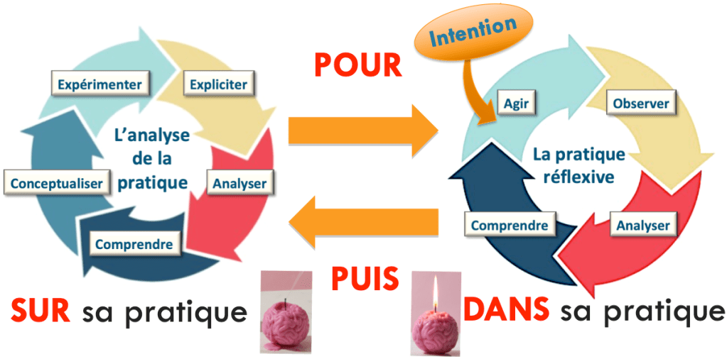 Vous aurez noté dans cette vidéo deux types de Pratique réflexive. L’une SUR sa pratique et l’autre DANS sa pratique. C’est à dire, respectivement, à froid en analyse de pratique et à chaud en situation de pratique avec son client en face à face. D’après Donald.A Schön, la Pratique réflexive à froid SUR sa pratique contribue à la Pratique réflexive à chaud DANS sa pratique. C’est une méta-compétence à chaud qui s’acquière avec l’entraînement à froid. C’est en prenant le temps de décomposer sa pratique passée en analyse de la pratique qu’on prend conscience des aspects non conscients de sa pratique et qu’on est plus efficace en situation. Mais pas avec n’importe quel type d’analyse de pratique. Pourquoi ?