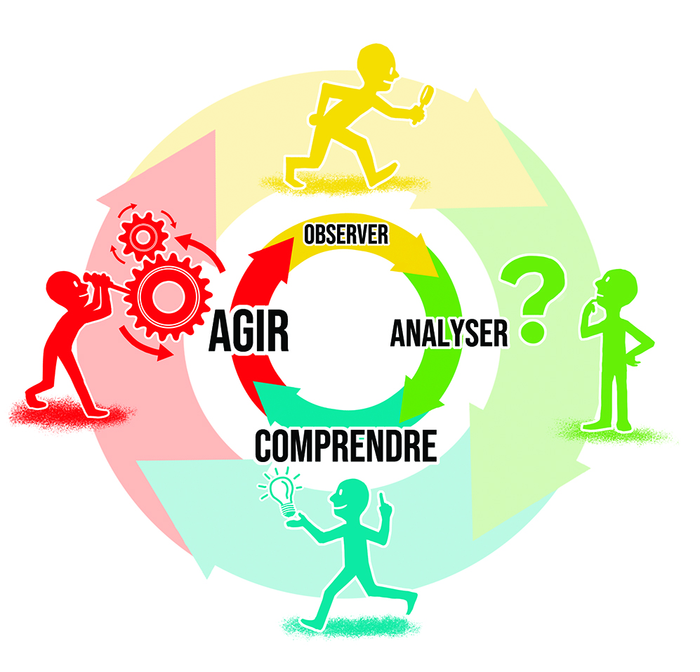 Dans la vie, une fois s’être fixé un objectif qui fait sens, on se résout à agir après avoir déterminé une intention. Agir est le premier verbe d’action. Lorsqu’on agit, on influence un résultat qu’il convient d’observer, c’est le second verbe d’action. On compare le résultat de l’action avec notre intention première. Cette comparaison conduit à analyser l’efficacité de l’action entreprise au regard de l’intention. Analyser est le troisième verbe d’action. L’analyse sert à comprendre les raisons pour lesquelles l’action n’a pas contribué à atteindre l’objectif et satisfaire l’intention. Comprendre est le quatrième verbe d’action. La compréhension amène ensuite à modifier la première action pour se rapprocher de l’objectif par dichotomie, un coup trop long, un coup trop court et ainsi de suite, jusqu’à « un coup dans le mille ! » Le processus de progrès continu est donc observer, analyser, comprendre, agir, mais agir avec intention. Toujours ! Conscientiser ce processus améliore grandement la formulation de ses intentions.