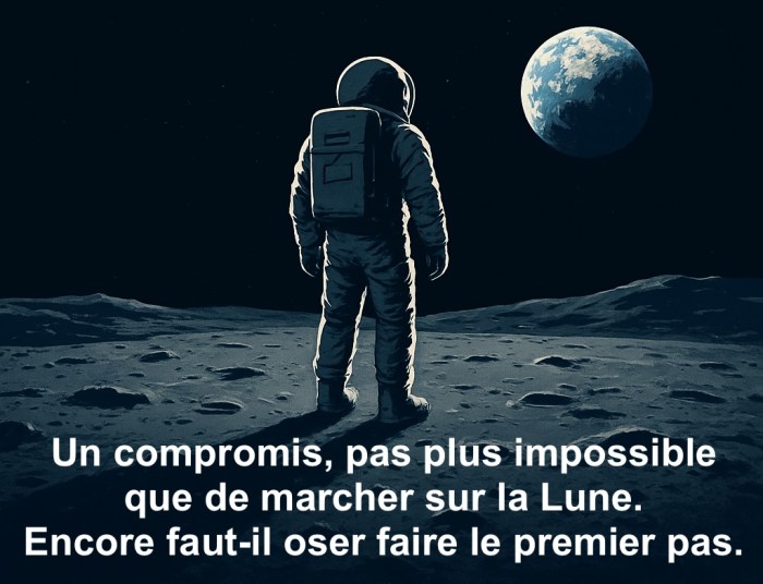 L’élaboration d’un compromis n’est pas plus impossible que de marcher sur la Lune. Encore faut‑il oser faire le premier pas.